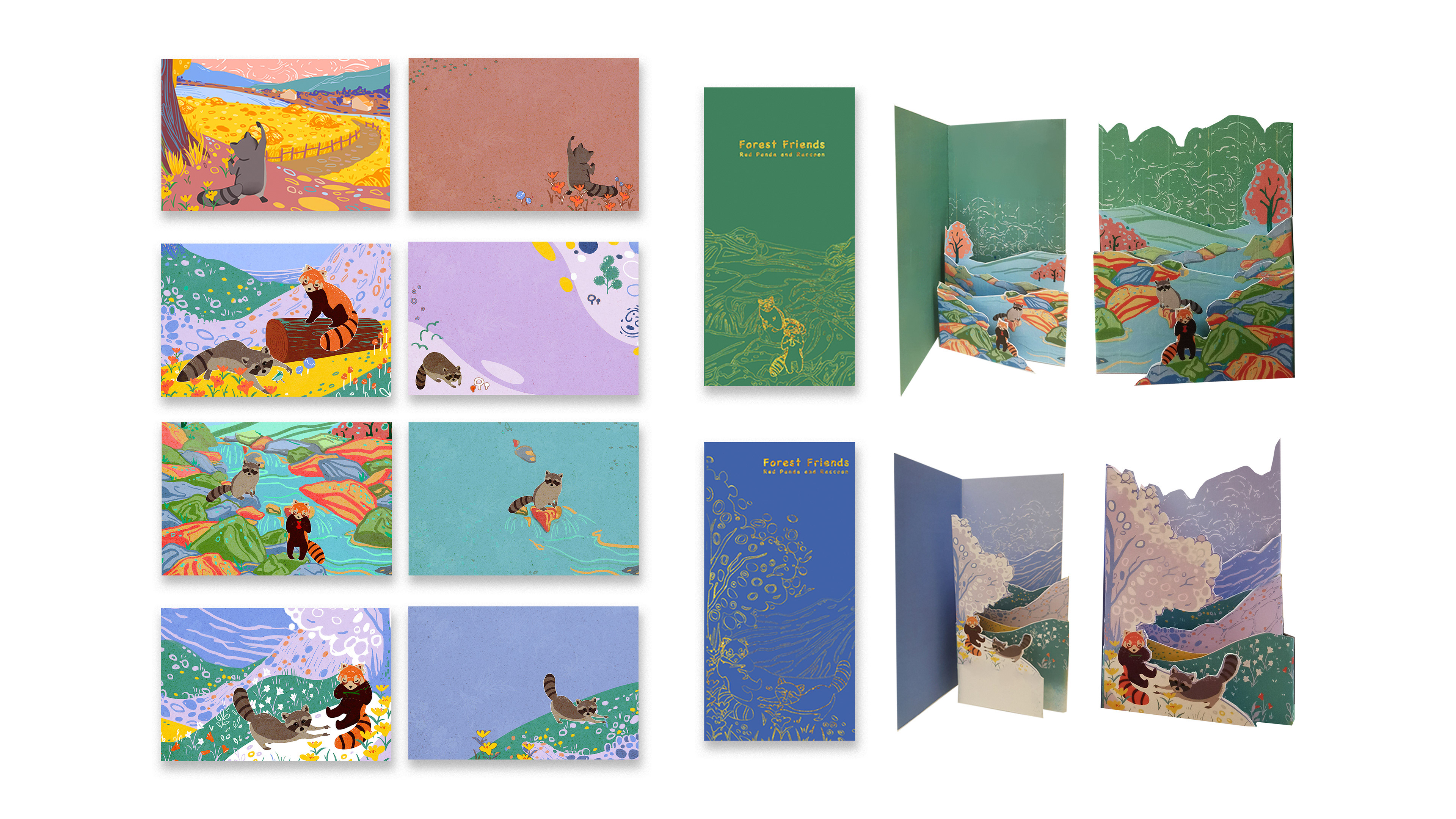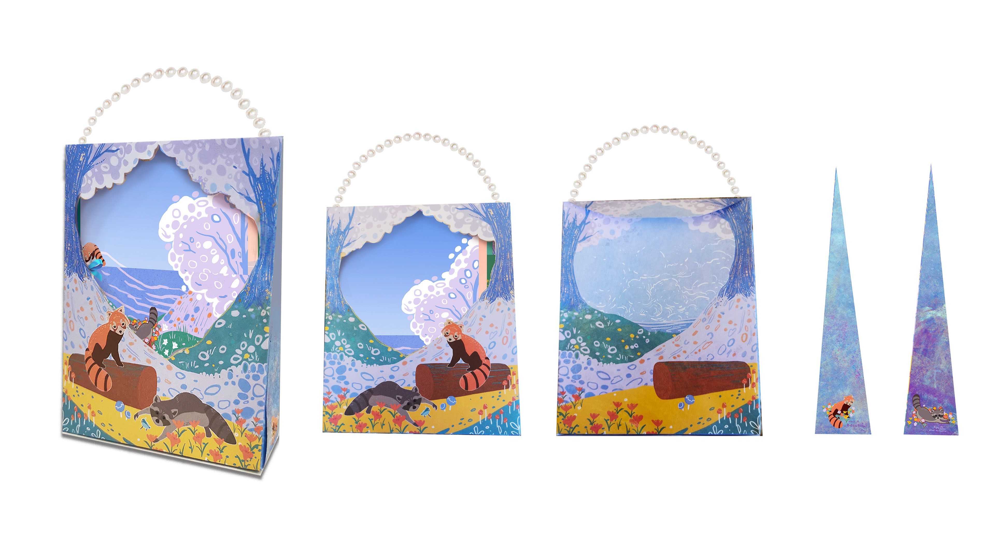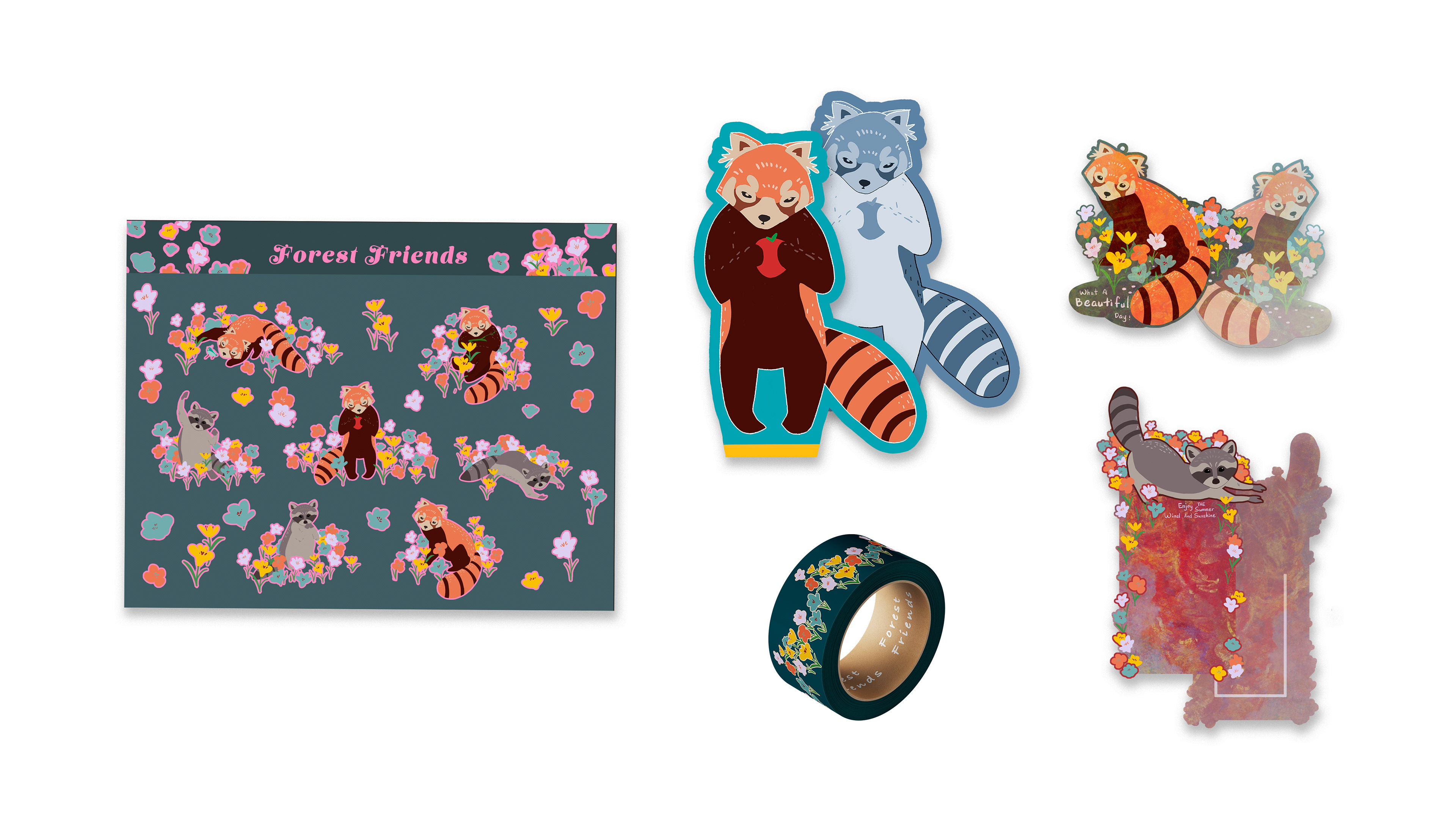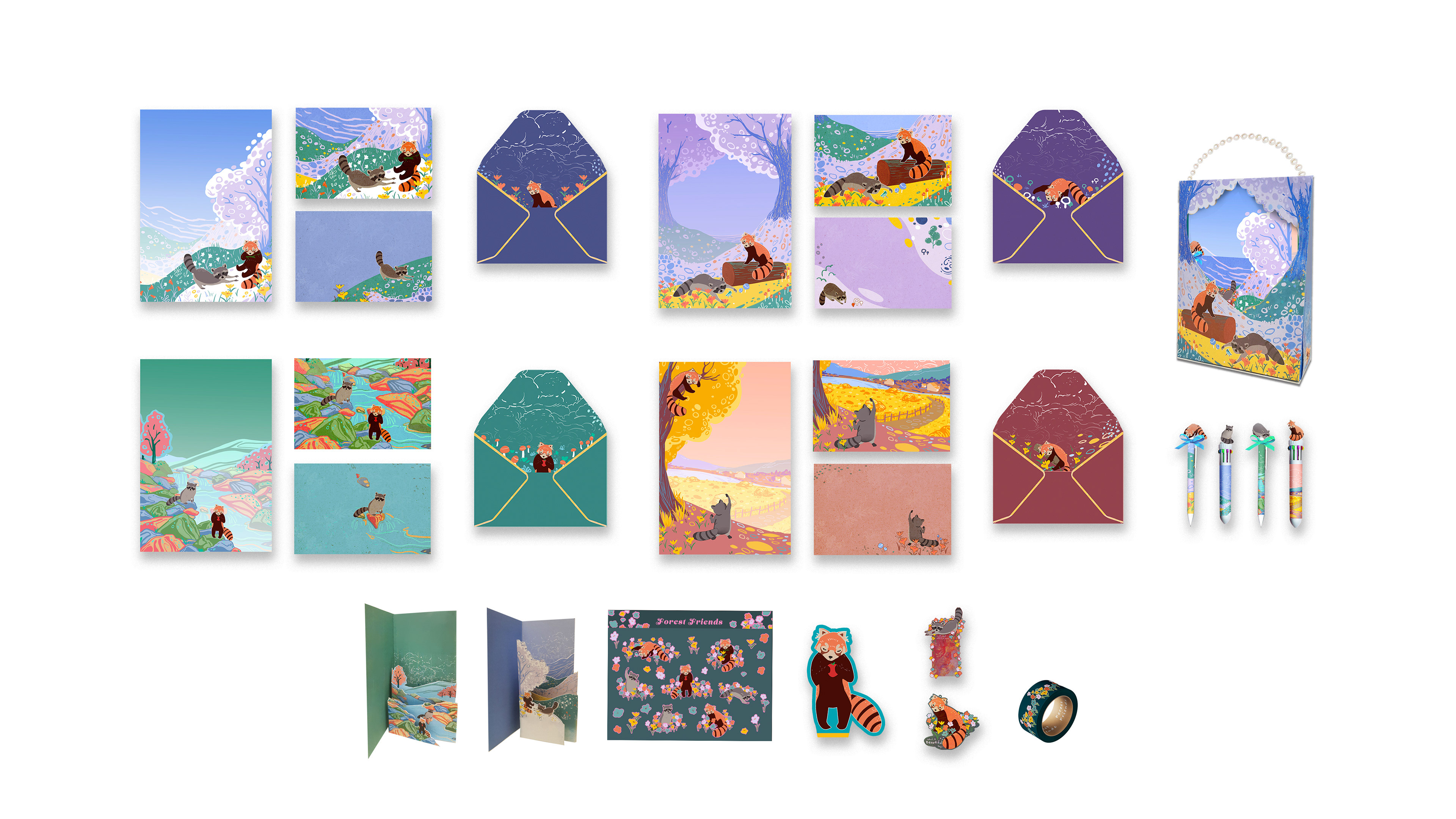 This stationery kit is inspired by the gentle friendship between a raccoon and a red panda — two curious travelers who share stories through letters. Designed for people aged 12 to 27, the collection includes letter paper, envelopes, postcards, pens, stickers, bookmarks, and tape, which could be mass-produced.