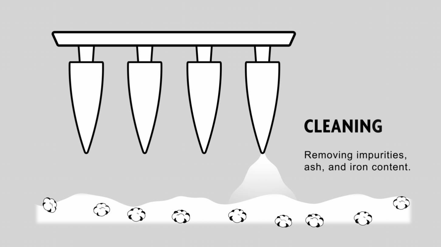 This commercial motion graphic showcases the refined transformation of raw cotton into premium paper, highlighting various stages while maintaining a level of secrecy to protect the manufacturer’s proprietary methods.